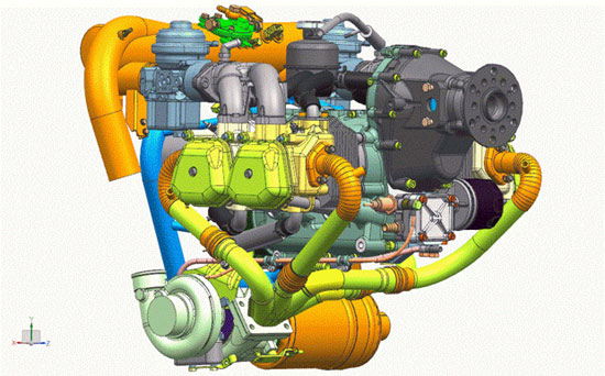 “轻型航空发动机TD0工程样机”是一款活塞式汽油发动机,综合性能达到了国外同类型无人机发动机水平。针对无人机和轻型航空器发动机适航性所需的轻量化、高可靠性等特点,发动机TD0工程样机通过一系列的工程设计满足了功率从50千瓦/时到150千瓦/时无人机和通用轻型航空器的需要,采用组合曲轴技术,达到了体积小、重量轻、强度高的目的。随着电控技术和多级增压技术的运用,该发动机及其后续产品可满足无人机高空、长航时的飞行需要。