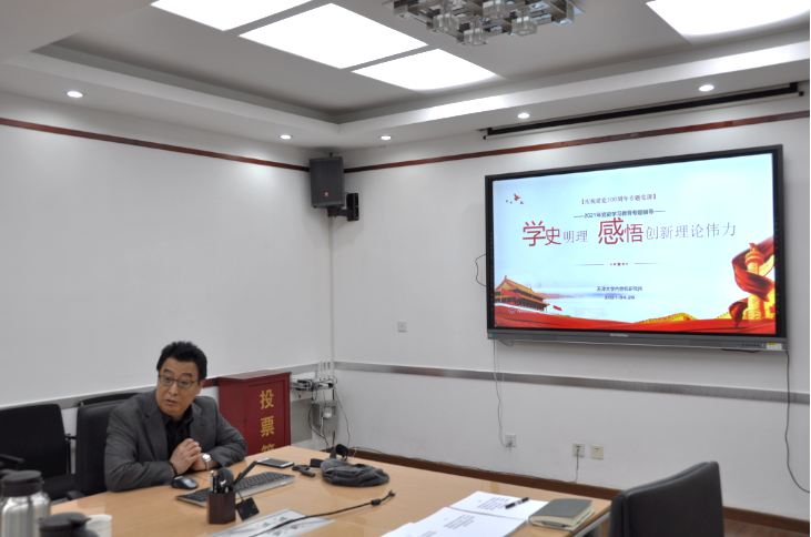 党委副书记包铁成作为第一专题的领学人,带领大家学习《学史明理,感悟创新理论伟力》。包铁成从建党初期、革命根据地时期、建国初期和改革开放及社会主义现代化建设时期等四个阶段,梳理了中国共产党在百年历程中重视教育、发展教育的历史实践脉络。报告内涵丰富、重点突出,对把握党史的主题主线、主流本质,树立正确党史观,做到学史明理、学史增信、学史崇德、学史力行,具有重要指导意义。