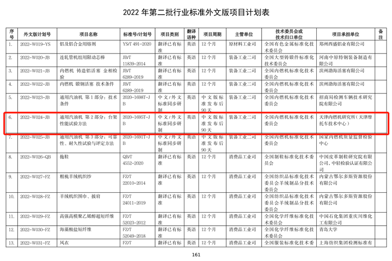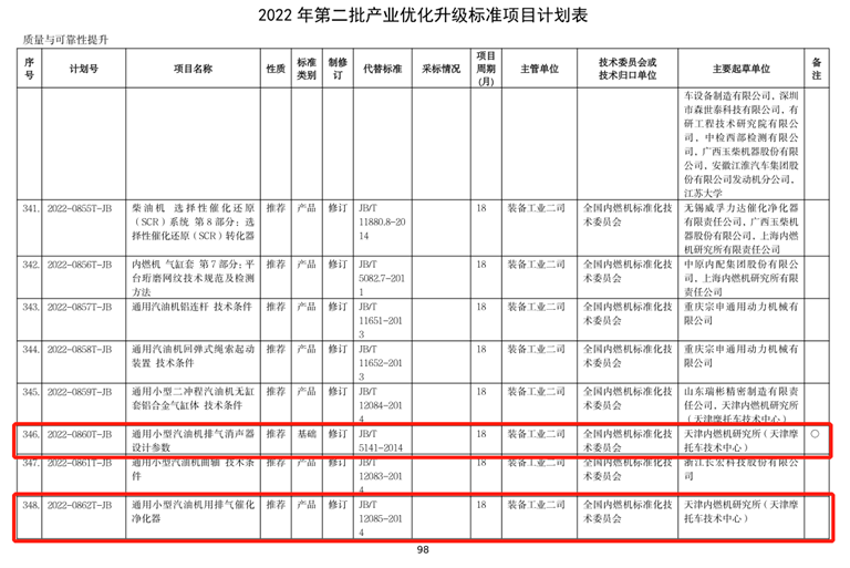 近日,工业和信息化部办公厅下达了《关于印发2022年第二批行业标准制修订和外文版项目计划的通知》(工信厅科函〔2022〕158号)。其中,于今年6月份顺利通过答辩的由天津内燃机研究所牵头制定的2项通机行业标准与1项行标外文版正式列入计划。