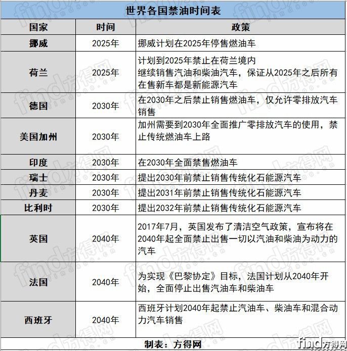 近几年来,欧洲一系列发达国家纷纷抛出了“禁燃时间”,下面就是方得网搜集整理的各国禁止燃油车的时间表: