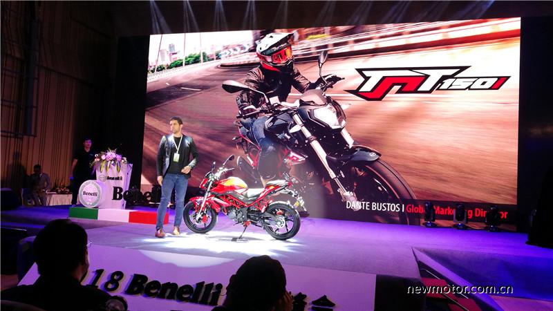 第二款新车,是贝纳利T N T150S,从外观来看,该车采用了新的设计语言,不像贝纳利以往车型那么线条感十足,而是更加圆融饱满。
