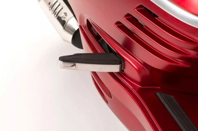 内挡风留有两个可锁式隐形储物箱。左侧的储物箱是注油口,右侧的储物箱配置12V充电接口,可为电子产品充电。折叠式隐藏挂钩,使储物、携带物品也变得时尚。