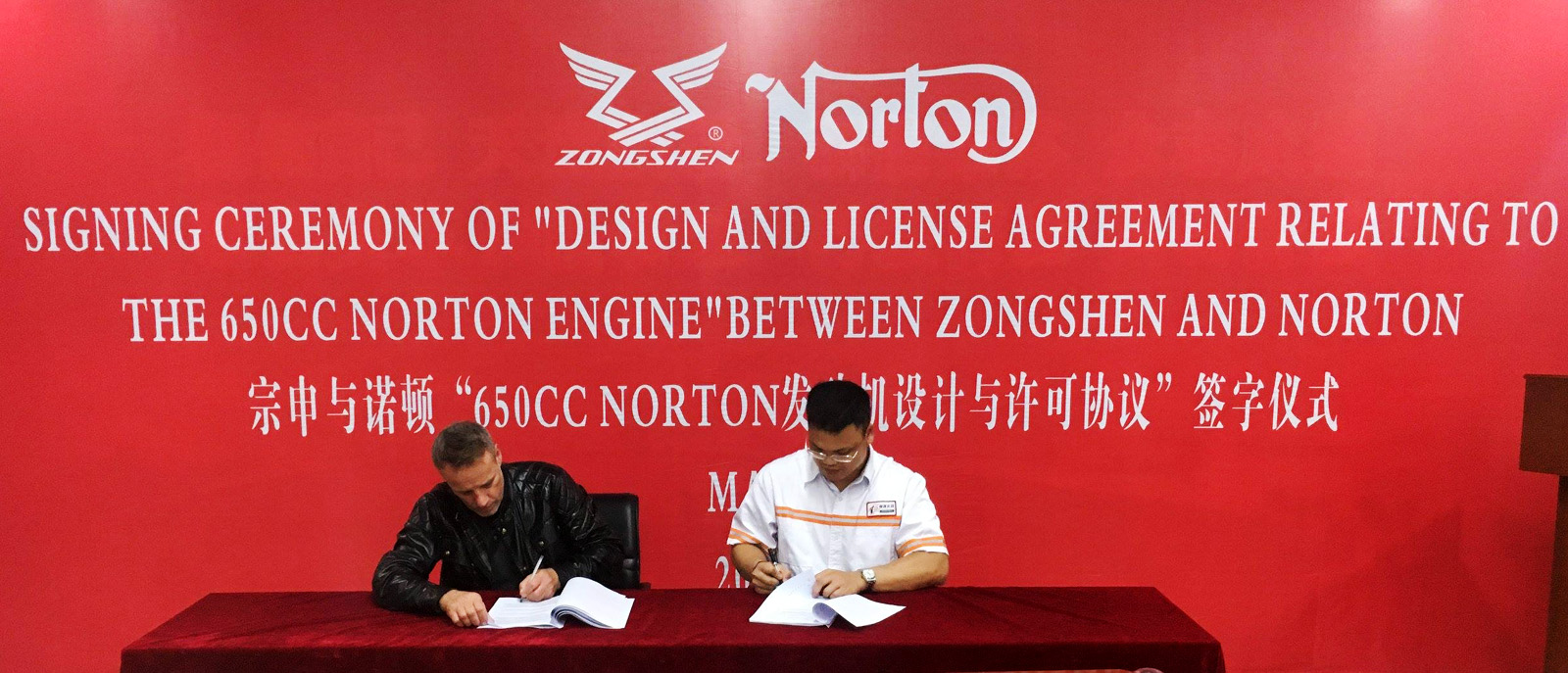 7月28日,英国诺顿(Norton)宣布,与重庆宗申摩托签定了关于直列双缸650CC发动机的设计和授权合作协议。