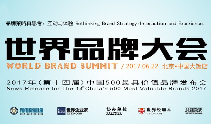 6月22日,由世界品牌实验室(World Brand Lab)主办的第十四届“世界品牌大会”在北京举行。会上发布了2017年《中国500最具价值品牌》分析报告。