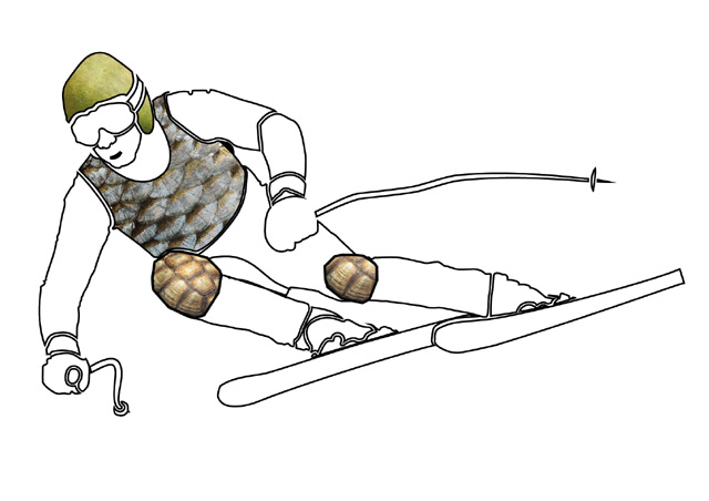 而鱼类和许多爬行动物的表面,都覆盖有重叠的鳞片,并形成一个复合的保护系统,即使是在负载下也能提供保护、让主体免受伤害。此外,单一的鳞片受到冲击后,还可以通过邻近的鳞片去传递力量,分散冲击。