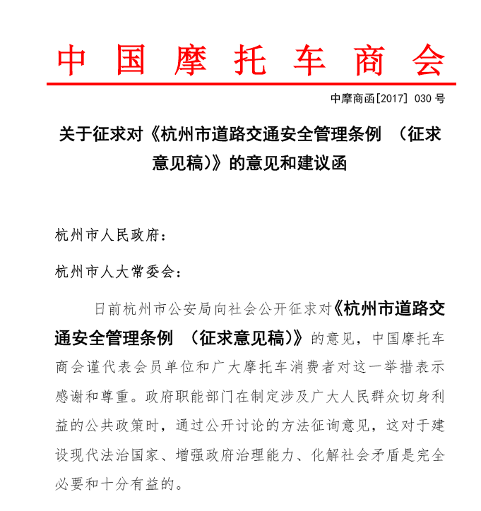 商会在得知此消息的第一时间,迅速撰写关于征求对《杭州市道路交通安全管理条例 (征求意见稿)》的意见和建议函递交至杭州市政府、杭州市人大常委会及杭州市公安局。