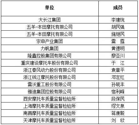 会上,李彬宣布“摩托车行业技术专家委员会”正式成立,并选出五羊-本田摩托的胡民强任第一届主任委员。专家委员会单位及成员名单如下: