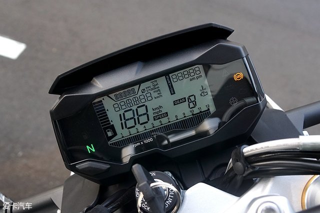 G 310 R的单色液晶仪表样式非常简单,外观虽然没有多余的修饰,但信息显示十分全面,甚至还加入了挡显和换挡指示灯。