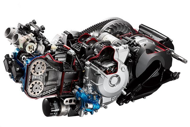 AK550搭载了一款排量为550cc的并列双缸发动机,并采用CVT传动,这款发动机的最大功率达到了39.3kW(53Ps)/7500rpm,最大扭矩为55.64Nm/5500rpm。