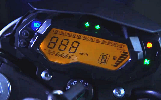 据观察,TNT 150大灯应该为卤素灯,但大灯下面有类似汽车流行的LED日行“泪灯”;此外TNT 150很可能是家族车型当中,首次搭载LCD全液晶。