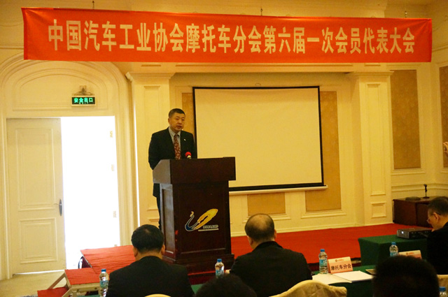 会议首先由五届摩托车分会秘书长李彬做大会报告,总结了四年以来,五届理事会在取消了摩托车消费税,恢复摩托车出口退税至17%等方面为行业争取到了切实的利益。在解决城市禁限摩、摩托车行业形象宣传等方面都做了很多工作。