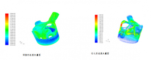 对分区孔大小优化,改善流场分布,提高鼻梁区等高温区域的冷却效果,降低缸盖温度并使温度分布比较均匀,从而使发动机的热负荷进一步降低。