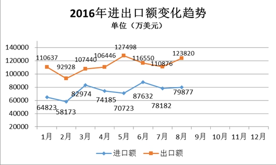 2016年8月内燃机行业出口总金额12.38亿美元,同比增长9.16%;累计出口金额88.85亿美元,同比下降6.65%。