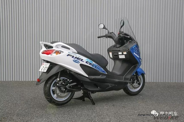 在适合一般街道骑乘的速克达车款「BURGMAN 200」上配备轻量且精巧的空冷式燃料电池并将氢气燃料箱装设在车台骨架内,维持至今以来速克达车款的特色。