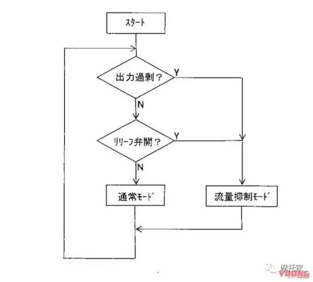 车厂也拟了一套运作机制,以让增压引擎能兼顾油耗,这个机制的设计图如下。最上方是开始,下方两个菱形依序表示引擎出力和进气洩压阀门是否开启,若引擎输出不会过多,接著电脑会侦测进气洩压阀有无开启,若无则不会启动,让引擎维持原有无增压状态,反之则会抑制进气流量,以达到油耗经济性。