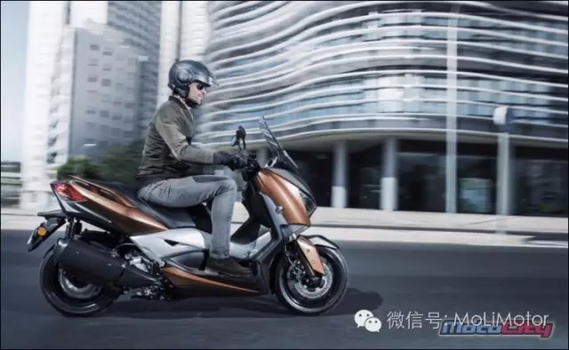 多了43cc的X-MAX 300 .马力增加7.6匹.但轴距反而缩小5mm.车长也更缩短.这样的设定无论是行进与停放都更利于市区的通勤使用