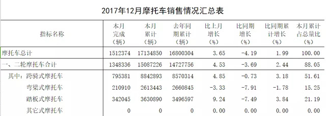 近日,由中国汽车工业协会摩托车分会统计的2017国内摩托车产销数据正式出炉。