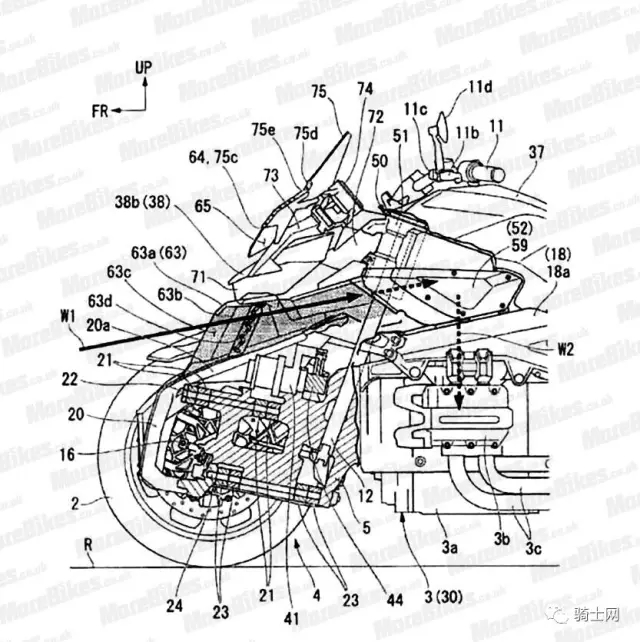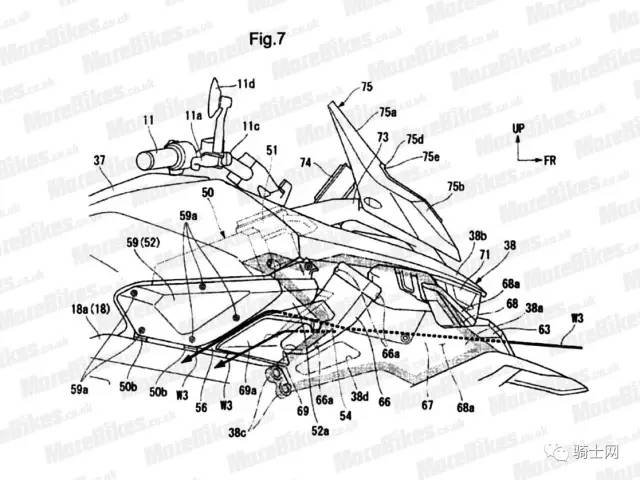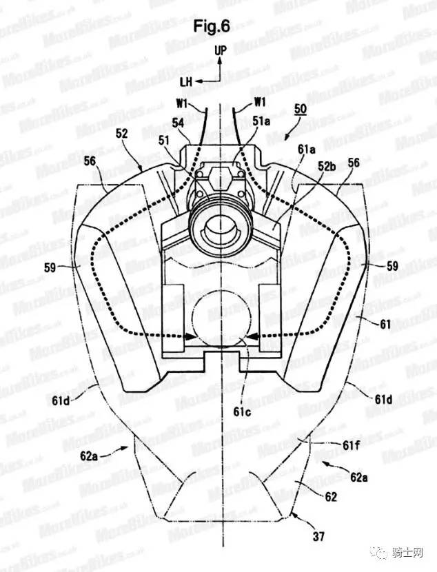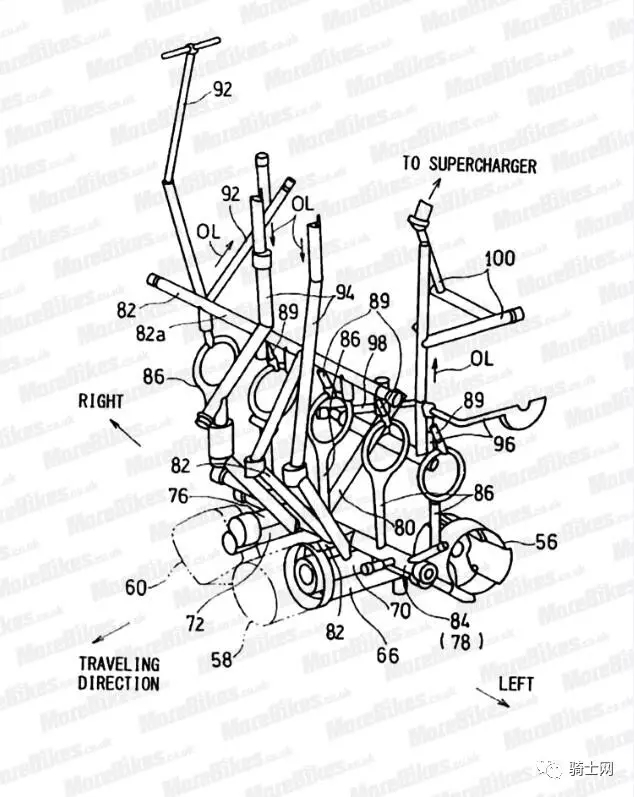 这次的专利书中除了披露机械增压机构之外,发动机型式也一改原先金翼的水平对置六缸,换成了对置四缸的新设计。图示也说明Neowing 的空滤盒是置中于油箱下方。机械增压的进气路线将由车头分别流入左右肩部进气道,再前往增压系统。由路线可看出,机械增压装置会在油箱下方,无法直接从外观看见。