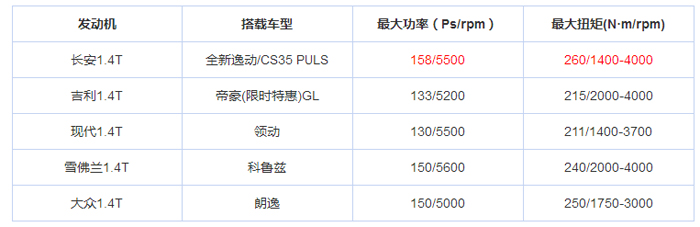 这台1.4T发动机能够输出最大功率158Ps,最大扭矩260N·m,横向与同级别发动机相比,数据上占据一定的优势。