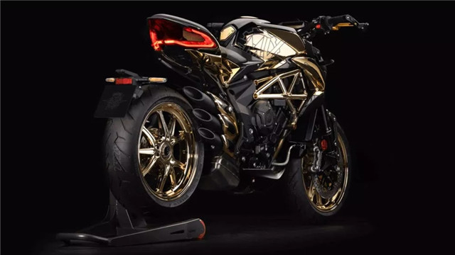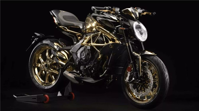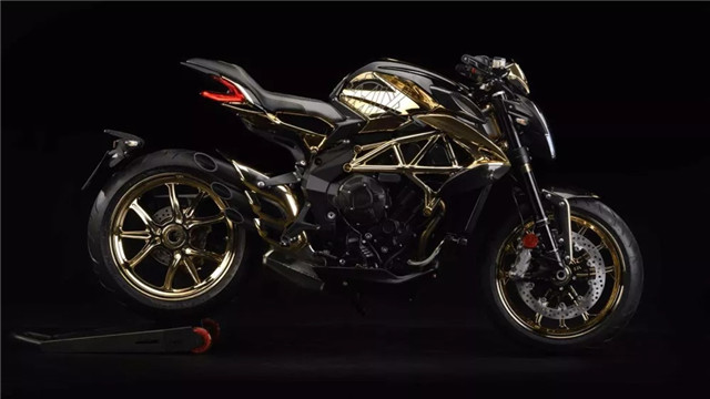 除此之外,在MV奥古斯塔网站上有一个特殊定制的个人的委托,黄金的车身让这款名为Shining Gold(耀眼金)Dragster 800 RC化身为世界仅有一辆的黄金艺术品。