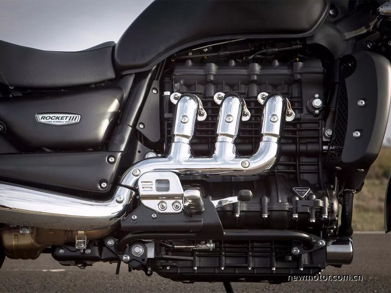 以巨无霸凯旋“火箭三缸”为例,这是世界上排量最大的量产型摩托车,水平并列三缸发动机的排量高达2294mL,比川崎“火神2000”足足多出241mL,比雅马哈“大魔鬼”VMAX多出615mL!凯旋深知这台超大“肚量”三缸发动机的潜能,并通过改进电子燃油喷射系统等措施,榨取出了更多的动力,最大功率达到109kW,特别是最大扭矩令人惊叹,增强至221N·m!