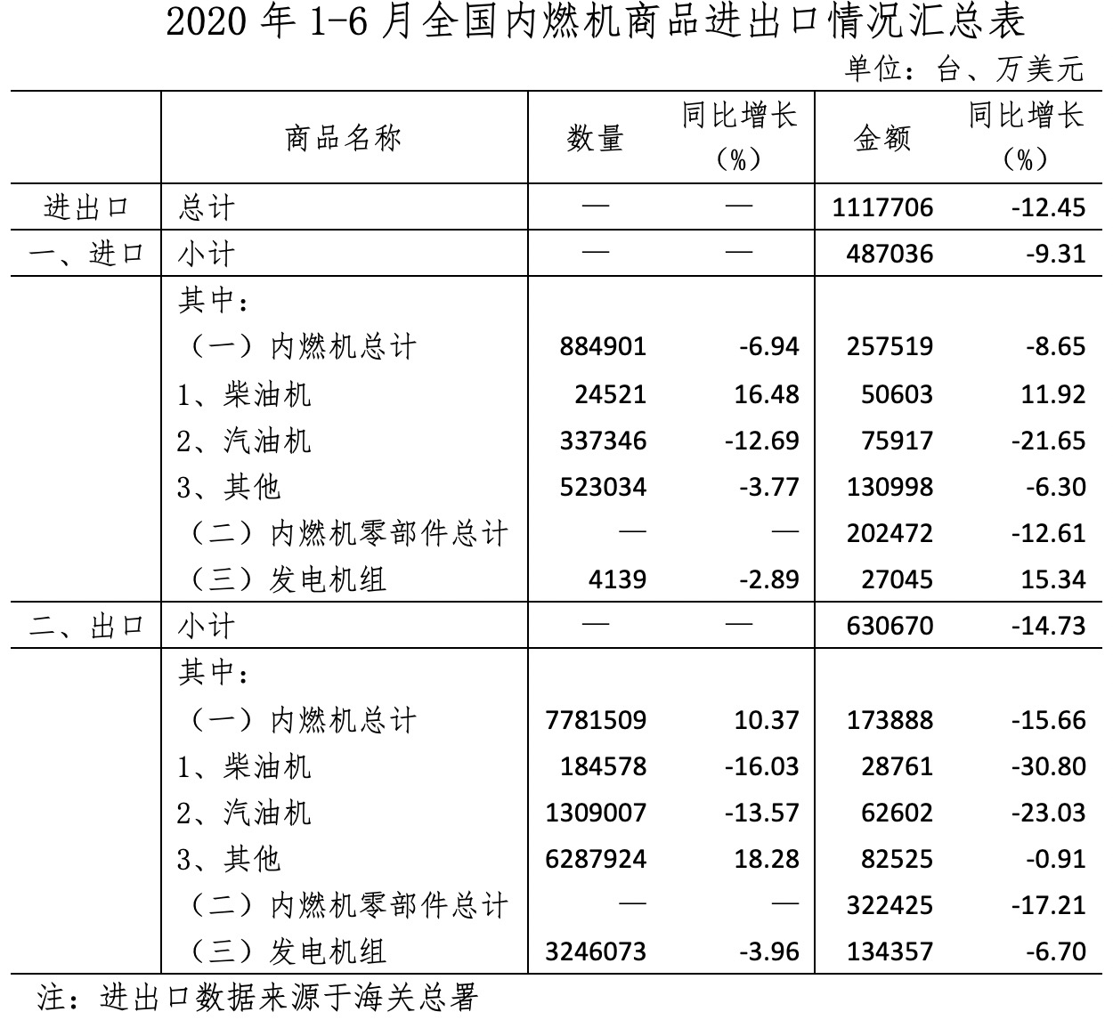 据国家统计局内燃机工业581家独立核算的规模以上企业(含467家内燃机及配件制造业和114家汽车发动机制造业)汇总数据,上半年由于新冠肺炎影响内燃机行业经济运行整体质量不及预期,随着企业生产经营的恢复,情况逐月好转,截至6月,主营业务收入已实现正增长,利润总额和出口交货值虽然负增长,但降幅收窄,利润总额降幅已收窄至10%之内。