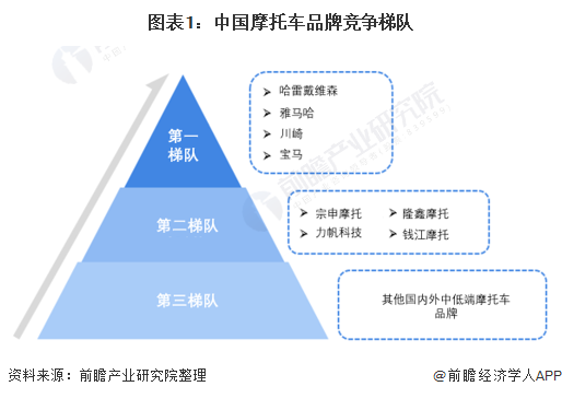 1、中国摩托车行业竞争格局:可以分为三大梯队